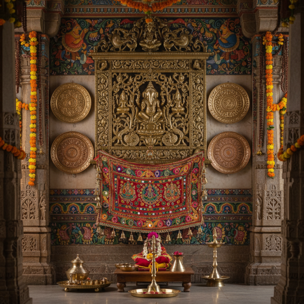 Beautify your temple with handcrafted mandirs, lamps, torans, and bells that radiate serenity and devotion.