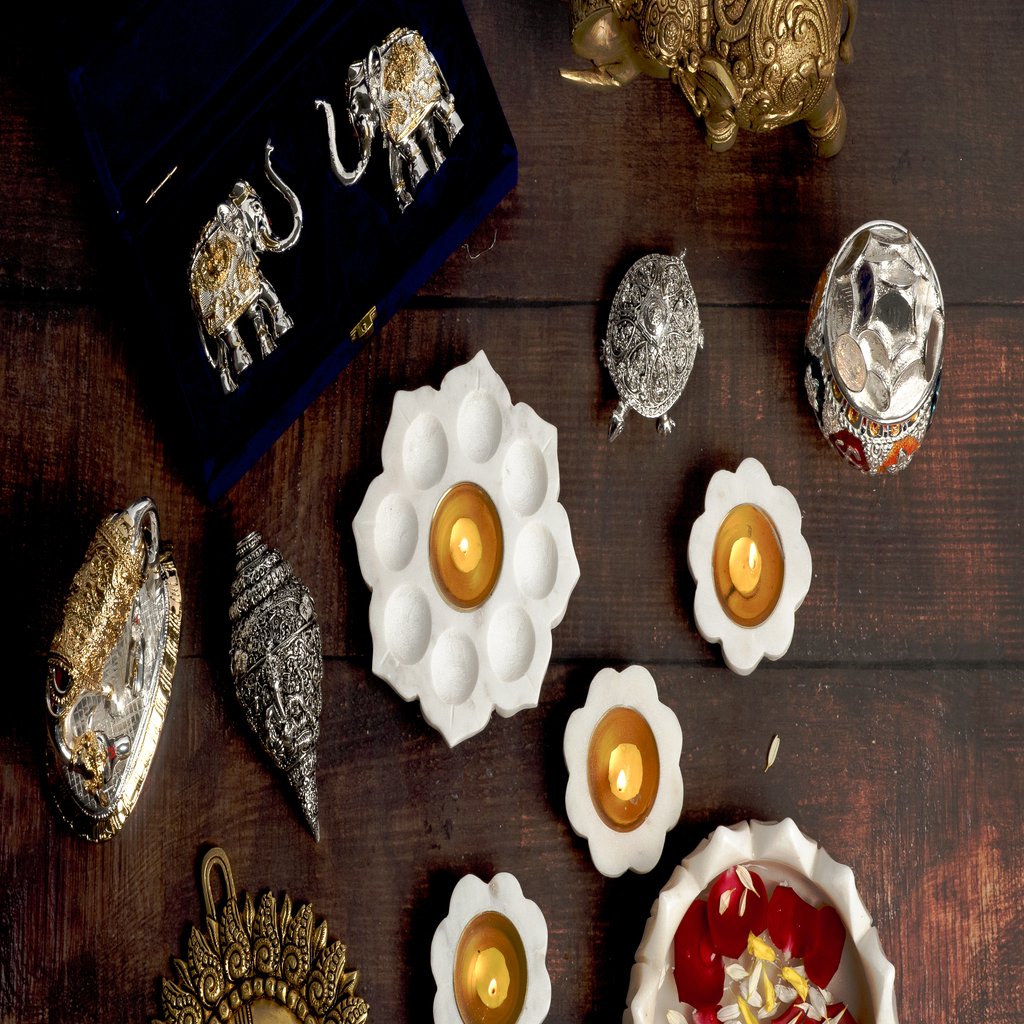 Enhance your rituals with premium pooja thalis, diyas, kalash, and accessories crafted in brass and copper.